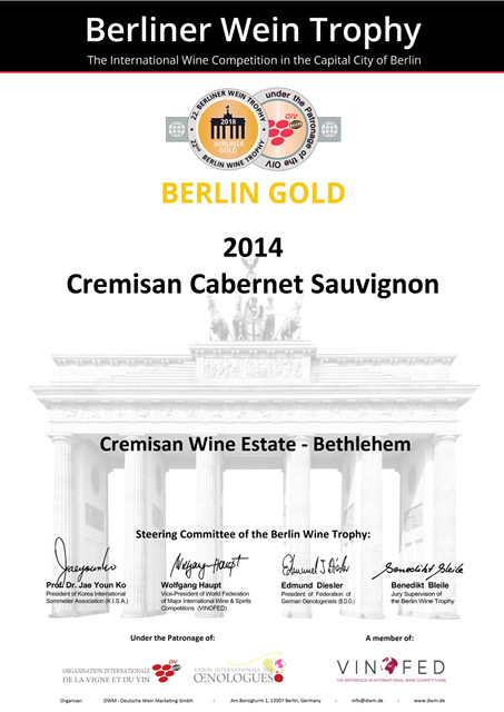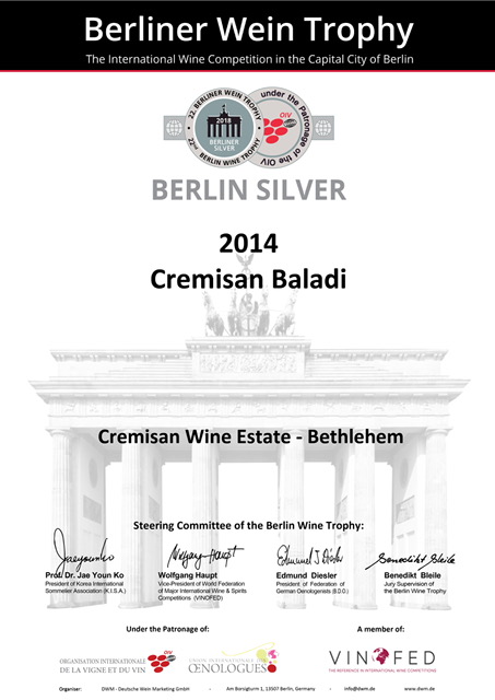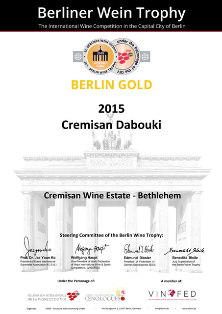 Ebbene sì, i prodotti di Cremisan si sono più che distinti ed hanno confezionato le tre medaglie, due di metallo prezioso e una d’argento, di cui foto qui sopra e sotto, una consacrazione quando si viene a scoprire che la giuria era composta di almeno 180 “giudici” se non di più, tutti con il “tastevin” al collo…