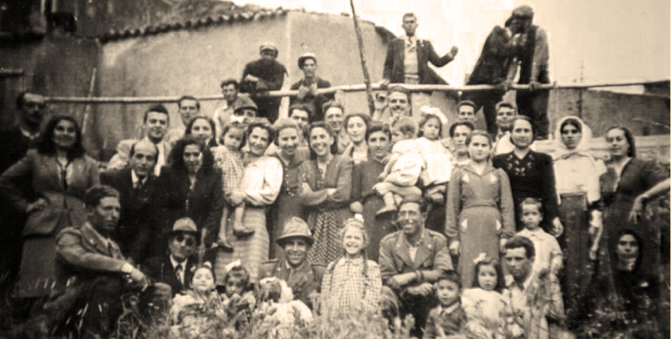 Caserma di “Fiorentini” 1948. Gruppo dei Forestali, insieme agli ausiliari e operai e loro famiglie, in occasione della festa della Madonna della Montagna.
