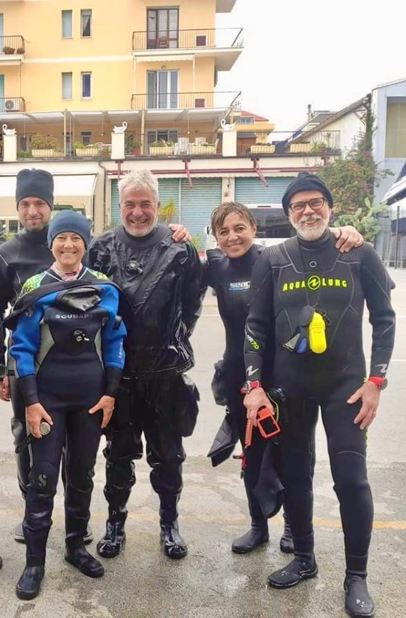 Lorenzo Conti : Santa Margherita Ligure, da destra: io, Marina (mia moglie) e cari amici, Stefano, Maria Grazia, Bruno. Dopo una bella immersione, settembre 2022